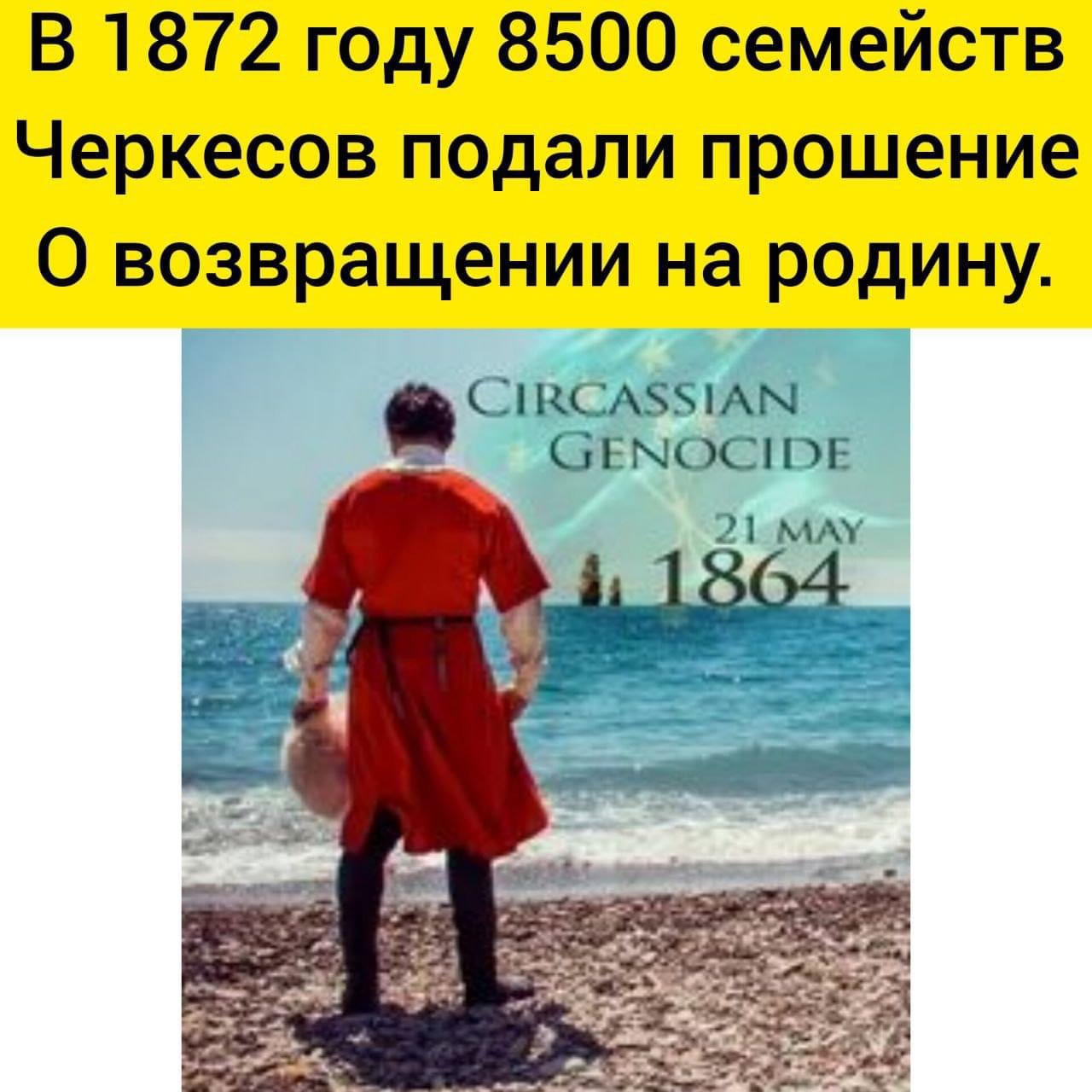 1872'de 8.500 Çerkes ailesi anavatanlarına geri dönmek için dilekçe verdi. Ancak İmparator II. Alexander "Geri dönmeleri söz konusu bile değil." Bu, Çarlığın, Rus tarihinde benzeri olmayan çarlığın soykırımıydı.
