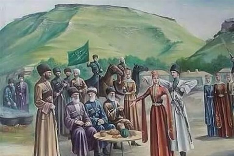 Kafkasya’ya seyahat, diğer zevklerin dışında bana Çerkes kutlaması Bayramı görmek için hoş bir tesadüf sağladı. Bayram kutlaması üç gün sürdü (Haziran’ın 12’sinden 15’ine kadar). 12 Haziran’da Mineralnıye Vodı (Maden Suları) ziyaretçilerinin büyük kısmı merak ettikleri kutlamayı ve yapılan eğlenceleri görmek için Goryaçevodsk’a 4 verst mesafedeki barışçı Çerkes köyünde bulunuyorlardı. Köye geldiğimde, öğleden sonra saat 3’te bütün Çerkes erkekleri ve kızları sokakta bulunuyorlardı. Her zamankinden daha şık giyinmişlerdi. Bir süre sonra aynı seslerden meydana gelen ve hiçbir anlam ifade etmeyen bir şarkı söylemeye başladılar (tra la la la, a la ve buna benzer sesleri telaffuz ediyorlardı) ve herkes bir düzen içerisinde Pyatigorye diye adlandırılandağların en yükseği olan Beştav’ın eteğinde bulunan ovaya doğru yürümeye başladı. Burada eyerlenmiş atlar hazırlanmıştı. Eğlence için belirlenmiş yere gelince Çerkes erkekleri bir halka, kızlar da başka bir halka oluşturdular. Bu şekilde iki gruba ayrılarak erkekler kendi şarkılarını söylemeye başladılar. Her biri diğerini bastırmaya çalışıyor ve güçlü şekilde el vuruyorlardı. Biri onlara özel düzeneği olan bir kavalla eşlik ediyordu. Şarkılara her zaman danslar eşlik ediliyordu: Halkanın ortasında bazen bir, bazen iki erkek ya da bir kız bir erkek birlikte oynuyordu. Gerçi oyunlarının cazip bir tarafı yok, hatta bunları vahşi bir coşkunluk olarak adlandırmak mümkün, fakat oyundaki kıvraklıkları bütün tekdüzeliğine rağmen olağan dışı. Oldukça fazla sayıdaki şarkıları da aynı tarzda, tempo ya da perde değişimi (sesin yükselip alçalması) çok az. Son olarak, şarkı icrasının sonunda erkekler ve kızlar ellerini birbirine kenetleyerek ortak bir halka oluşturdular, çıkarıyorlar. Bunları her zaman deri ayakkabıların üzerine giyiyorlar, bu yüzden erkeklerin yanında dev gibi görünüyorlar, gerçi doğal boyları da bizim Rus kadınların boylarından çok daha uzun. Bu da kuşku yok ki şundan kaynaklanıyor; kızları 7 veya 8 yaşından itibaren dikilmiş bir derinin içine koyuyorlar, evleninceye kadar bunun içinde kalıyorlar. Bu bağcıklı deri nedeniyle vücutları özellikli oluyor: Bastırılmış düz göğüsler; iki omuz arasındaki mesafe olağan dışı; omuzların aşağısında vücut gittikçe daralıyor, öyle ki kalça kemiğinin üzerinde bellerinin çevresi dört çetvertten6 biraz daha fazla oluyor.