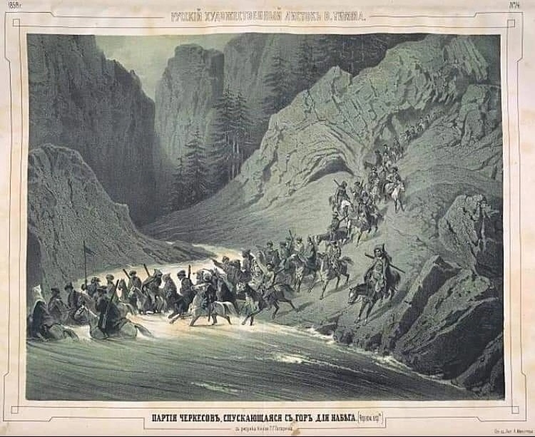 K.O. Stal, “Modern Çerkesin”, “Halkının Nartlarının... ve Tlekhupkhların (лIыхъужь – şövalye, kahraman – A.M.) yankı uyandıran kahramanlıklarını taklit etmek ister diye yazmıştır; onların yırtıcılıkları kendisine halk efsaneleri ve halk şarkılarıyla anlatılır.”