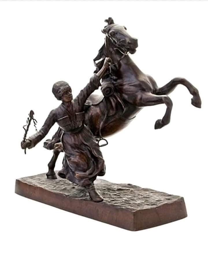 Alman Heykeltıraş Hans Guradze'nin XIX. Yüzyılın ikinci yarısında bronzdan "Çerkes Lider Ve Şaha Kalkan Atı" heykeli.