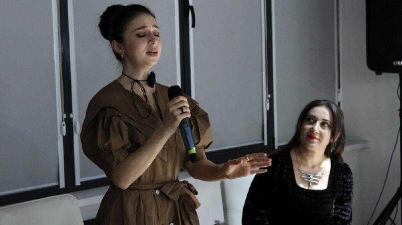 “Kafkasya” topluluğunun saygıdeğer üyeleri genç şarkıcılarla birlikte sahne aldı ve sanatçıların seslerinin müzikal çerçevesi müzisyenler Hamid Kunijev, Timur Kunijev ve İslam Khajnago tarafından oluşturuldu.