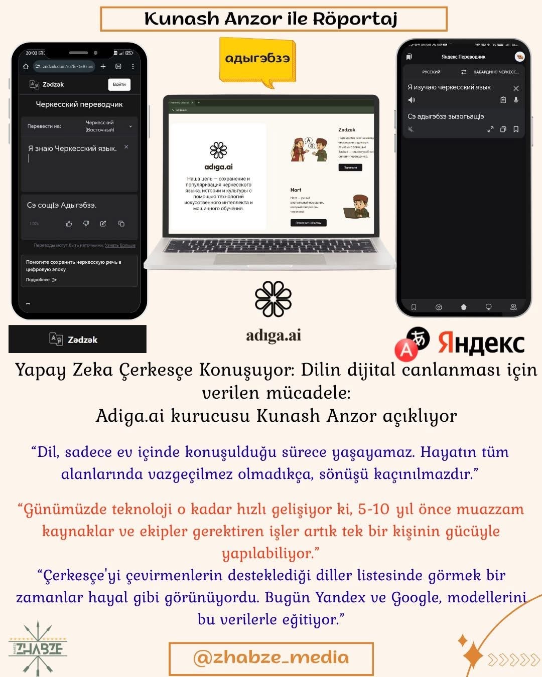 Biz, "Zhabze" Zhabze ve "Çerkesya Gençliği" Çerkesya Gençliği olarak, Çerkes dilinin dijitalleşmesi, yapay zeka ve bu alandaki gençliğin rolü hakkında kendisiyle konuştuk.