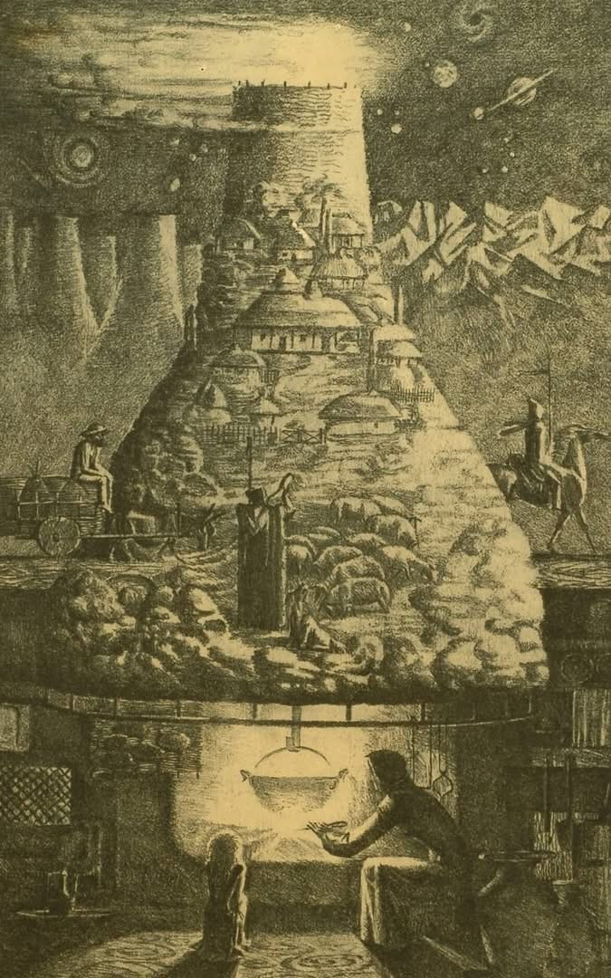 Resmin merkezi görüntüsü olan ocak, varoluşun başlangıcını ve temelini temsil ediyor ve yaşamın farklı seviyelerini birleştiriyor.