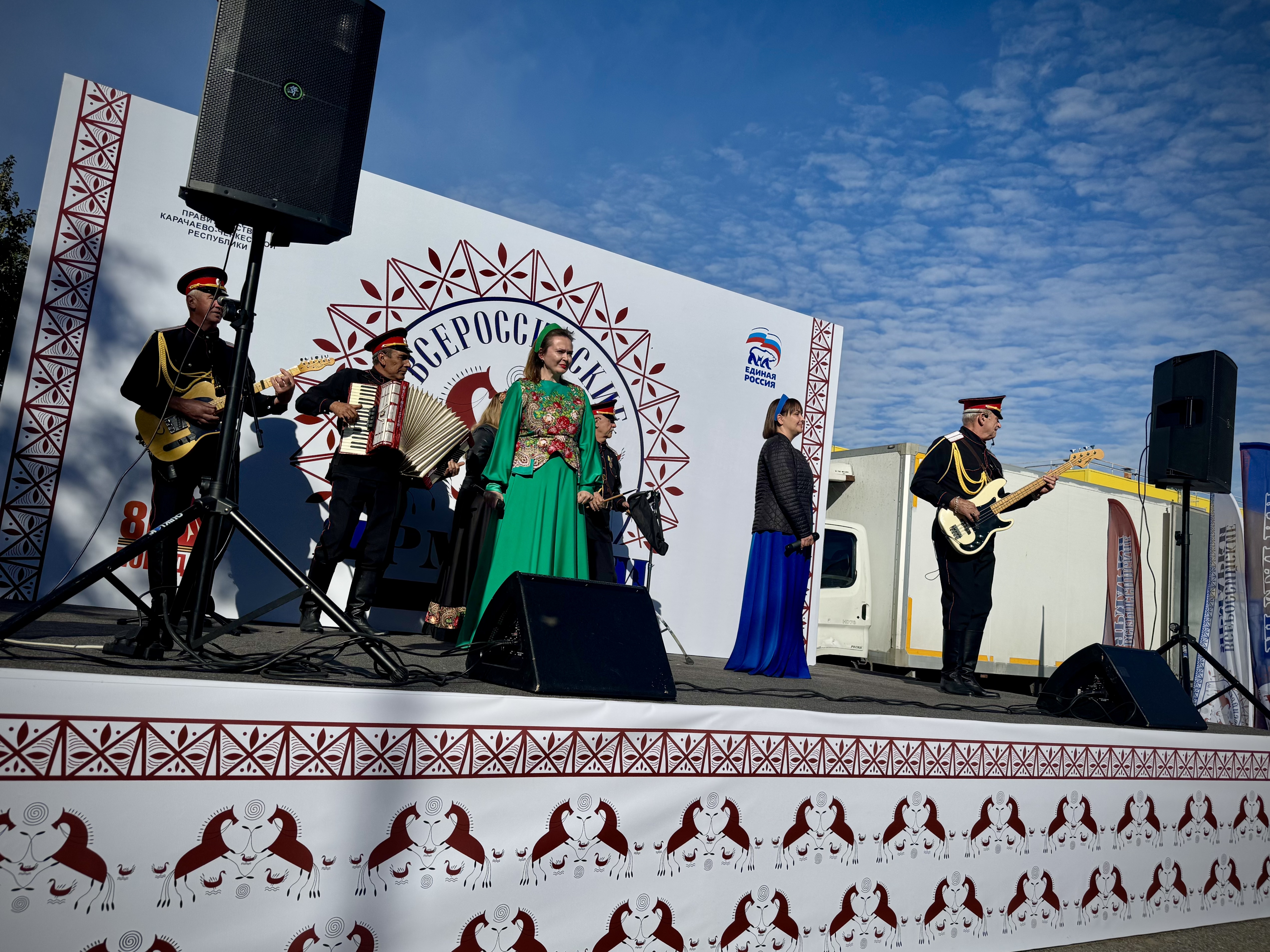 Karaçay-Çerkes Cumhuriyeti Devlet Filarmoni Orkestrası sanatçıları, fuar katılımcıları için şenlikli bir atmosfer yarattı.