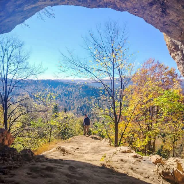 Mağaranın girişinde siyah bir film ve taşlarla özenle korunmuş derin bir çukur var. Nemli ve karanlık mağaradan, altın sarısı Ekim manzarası ve Lagonaki sıradağlarının yumuşak zirveleri görülüyor. Burada, her birimizde yüzde iki oranında ilkel genlerini bırakan gizemli Neandertallerin hangi koşullarda yaşadığını hayal etmek mümkündür.