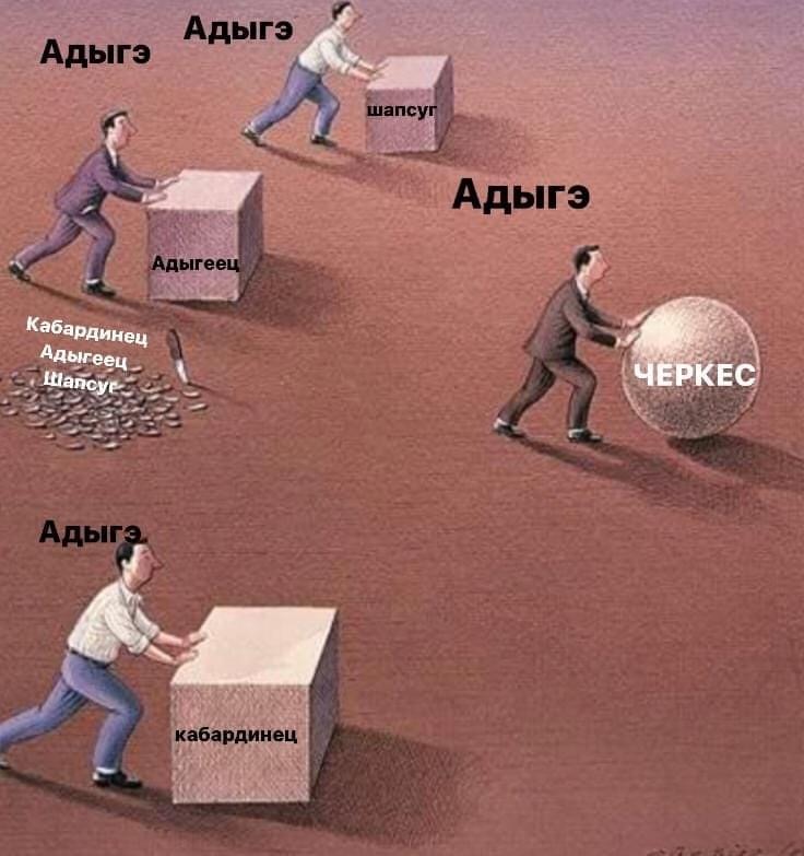 Sonuç olarak, diyor Gukhemukhov, Karadeniz kıyısında yaşayanlar Shapsugh, Adığey Özerk Bölgesi'nde yaşayanlar Adığe, Kabardey Balkar Cumhuriyeti'nde yaşayanlar Kabardey ve Karaçay Çerkes Cumhuriyeti'nde yaşayanlar Çerkes oldular.