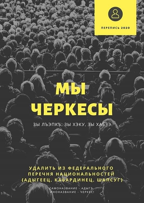 Hem vatanlarında hem de başka ülkelerde yaşayan Çerkesler, şimdi, Moskova tarafından – Adığe, Çerkes, Kabardey ve Shapsugh diye - farklı “milliyetlere” bölünen Çerkeslerin haklarını talep etmelerini ve ( nüfus sayımında HS ) kendilerini “Çerkes” olarak yazdırmalarını istiyorlar. (windowoneurasia2.blogspot.com/2019/12/circassian-drive-to-declare-common.html).