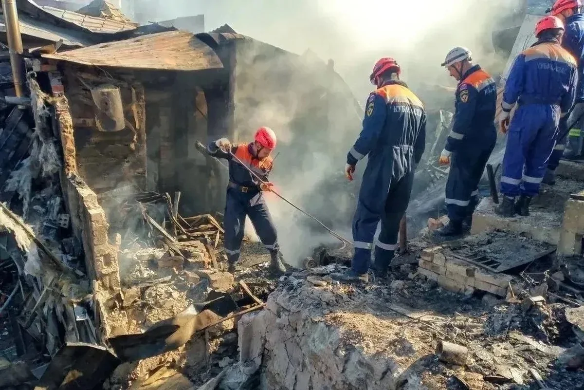 Perşembe öğleden sonra, Tuapse ve Soçi Kuban-SPAS ekiplerinin üyeleri, insansız hava aracı saldırısı sonucu tahrip edilen bir özel evin yapısını söktüler.