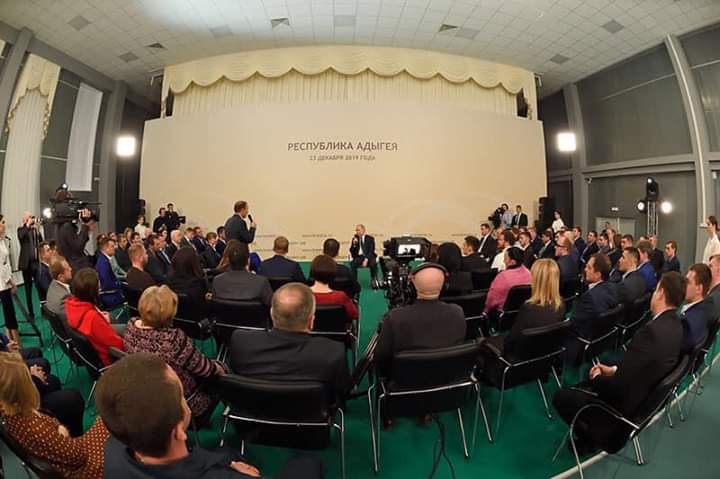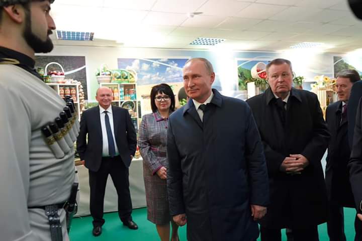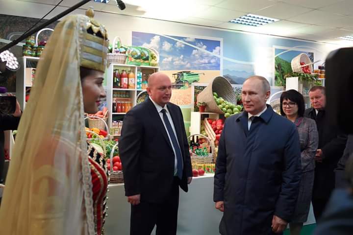 Sonrasında Vladimir Putin Adıgey'de üretilen tarım ürünlerinin yer aldığı bir serginin açılışını yaptı.Bu sergide çeşitli peynirler, yağlar, fırın ürünleri ve sosis benzeri ürünler sergilendi.