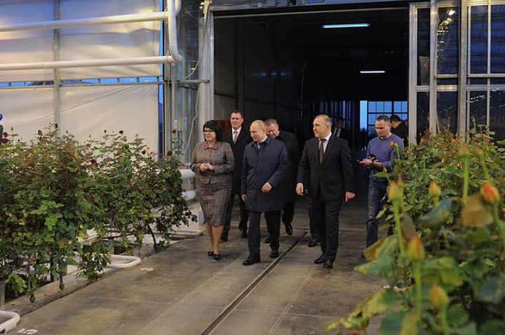 Vladimir Putin ve Cumhurbaşkanı Murat Kumpilov "Green house" LLC'yi ziyaret etti. Şirket 2010 yılından bu yana gül üretimi yapmaktadır ve üretim hacmini aktif olarak arttırmaktadır.