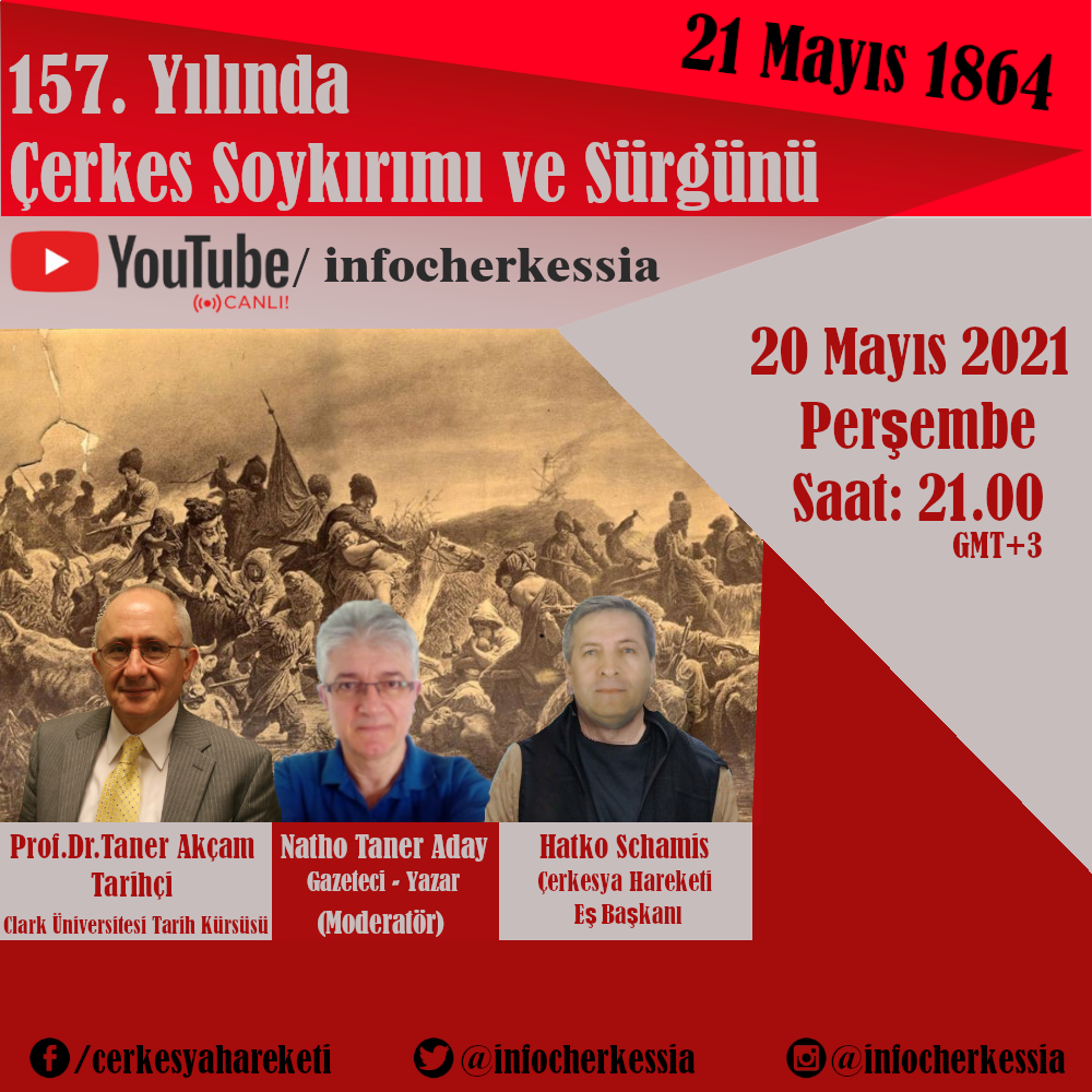 20 Mayıs 2021, Perşembe akşamı, saat 21:00'da, Youtube üzerinden yayın yapmaya başlayacak "infocherkessia" kanalımızda iki konuğumuz olacak: