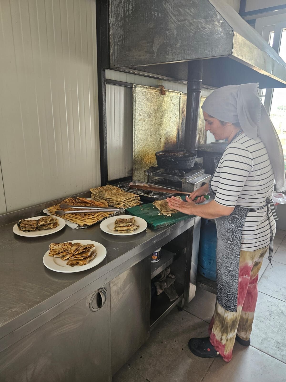 İç bölümdeki ocaklarda ise kadınlar otlu, peynirli gözleme ve meşhur Çerkes böreği Haluj pişirerek isteyen müşterilere servis ediyor.