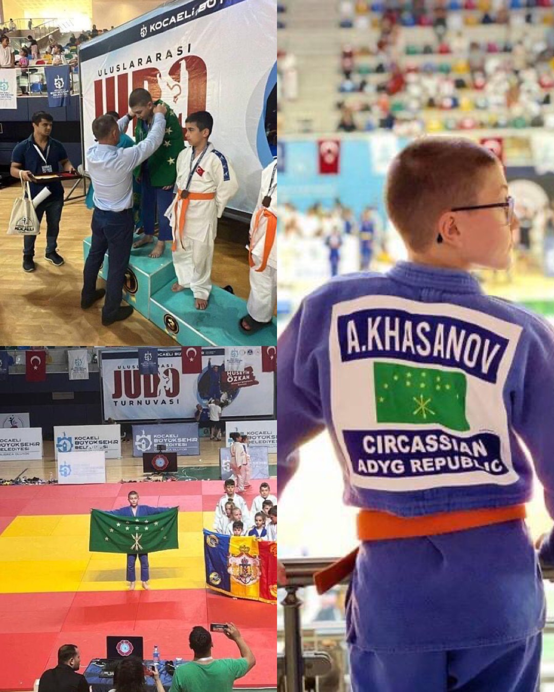 Çerkes ( Adığe ) kimliği ile ve Çerkes bayrağı ile salona giren ve kürsüye çıkan Adığe Cumhuriyeti'den sporcumuz Aliy Khasanov, Türkiye'nin judo olimpiyat şampiyonu Hüseyin Özkan onuruna İzmit'te düzenlenen Uluslararası Türkiye Judo Turnuvası'nda 46 kiloda birinci olarak altın madalya kazanmıştı.