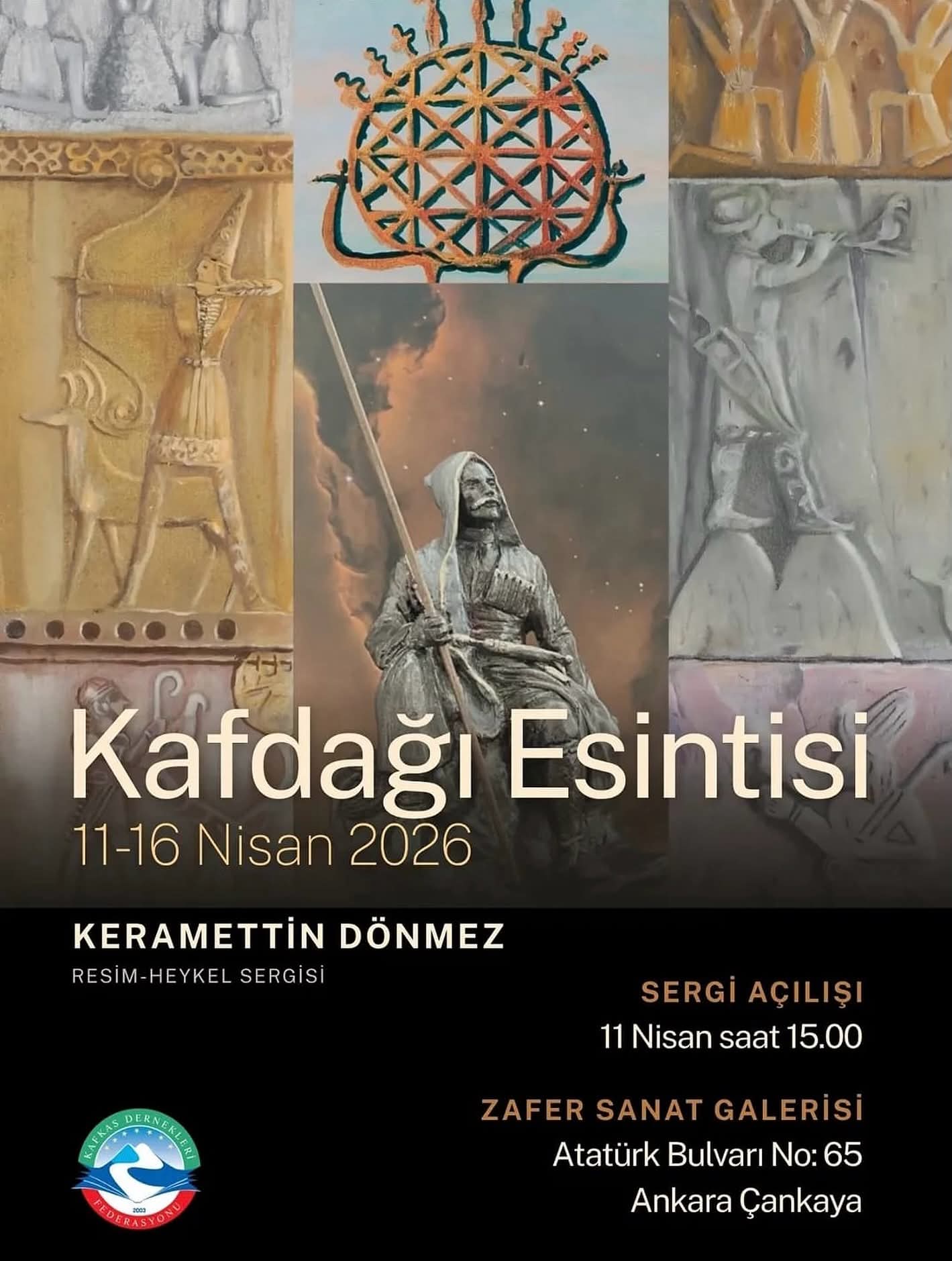Bezroko Keramettin Dönmez’in “Kafdağı Esintisi” başlıklı resim ve heykel sergisi Ankara’da 11-16 Nisan tarihleri arasında ziyarete açık olacaktır.