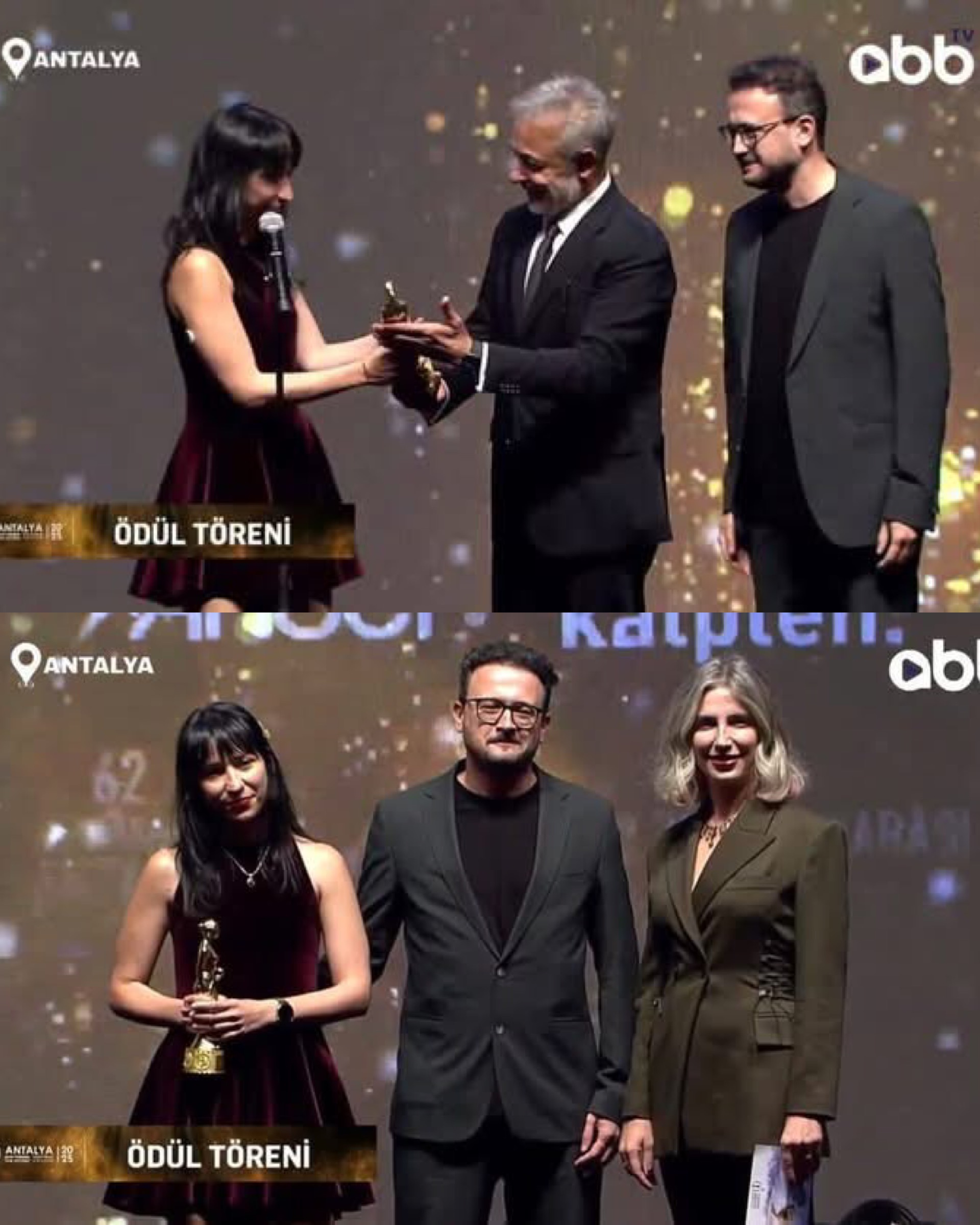 En iyi senaryo ve En iyi ilk film ödüllerini kazanan ‘’Sahibinden Rahmet’’ filminin yönetmenleri Gözde Yetişkin ve Emre Sert ödüllerini Mehmet Aslantuğ ve Gülşah Atalar’ın elinden aldı.