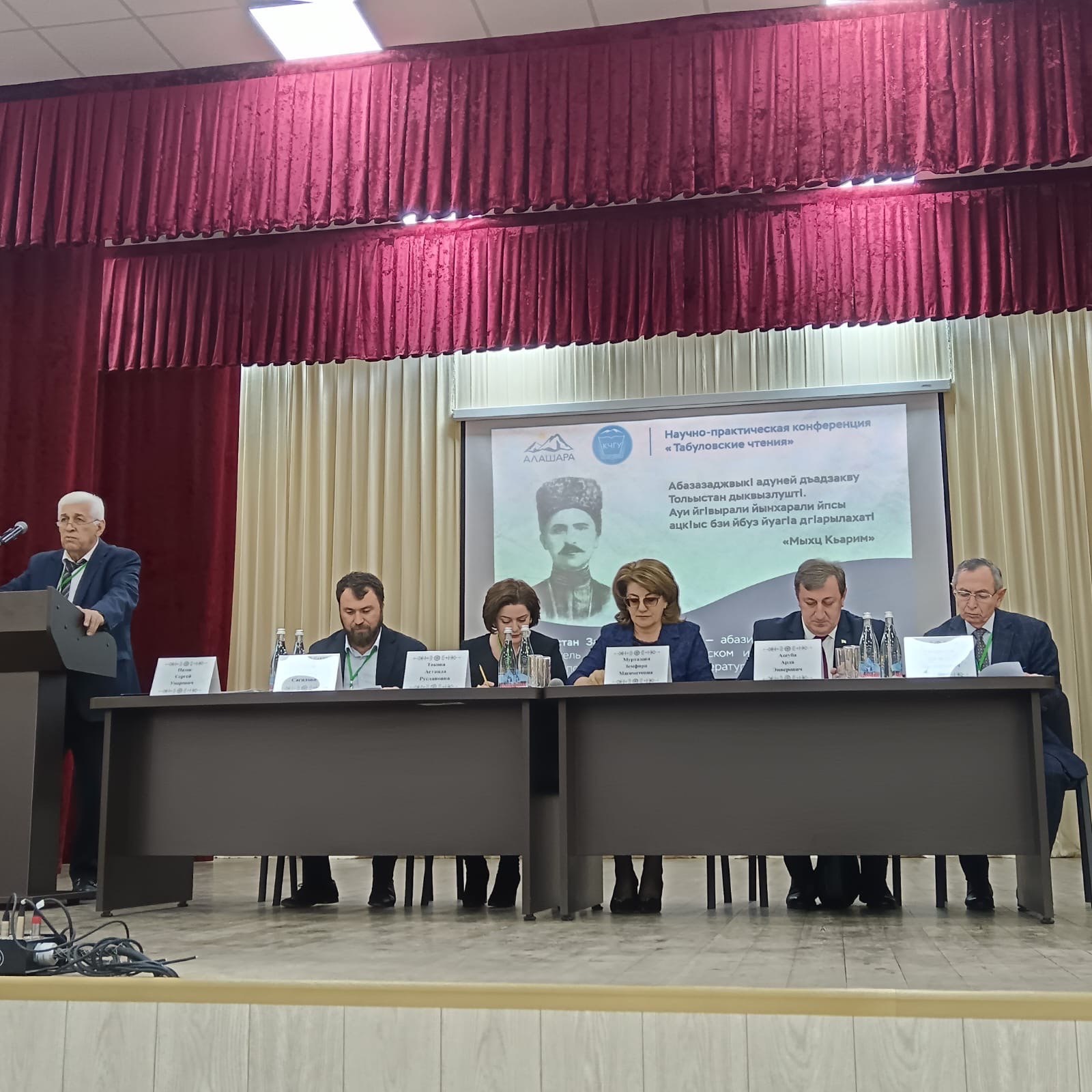 Alaşara Derneği Başkanı Mussa Ekzekov adına, kuruluşun Çerkes Ofisi Başkanı Murat Gedugo konferans katılımcılarını karşıladı. Talustan Tabulov'un önemini ve Abaza dilinin korunması ve geliştirilmesine yaptığı katkıyı vurguladı: