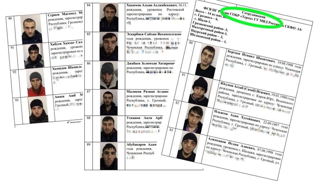 Gazeta Novaya'da, Aralık 2016'dan Ocak 2017'ye kadar gözaltina alınan 108 tutukluya ait veri ve fotoğrafların yer aldığı, Çeçenya İçişleri Bakanlığı'na ait bir liste var.