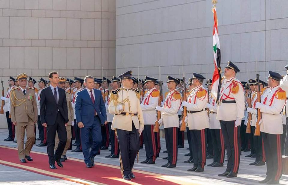 Konuk Devlet Başkanı Bibilov Suriye Cumhurbaşkanı Beşar Esad tarafından resmi törenle karşılandı.