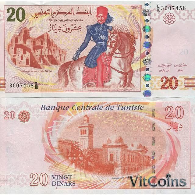 Tunus'un 20 dinar nominal değerindeki banknotunda yer alan Hayreddin Paşa'nın resmi. (Kasım 2011).