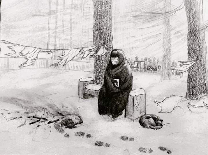 Çevik kuvvet polisinin( OMON ) gaz sobasına da izin vermediği anne, soğuğa ve donma tehlikesine rağmen eylemine devam ediyor.