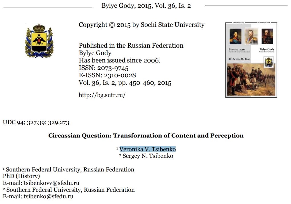 71. Tsibenko V.V., Tsibenko S.N. Circassian Web Resources: Structural Features, Dynamics of Development, Content Aspects // Scientific Thought of the Caucasus. №2. 2015 [In print]. (In Russian: Цибенко В.В., Цибенко С.Н. Черкесские веб-ресурсы: структурные особенности, динамика развития, содержательные аспекты // Научная мысль Кавказа. №2. 2015).