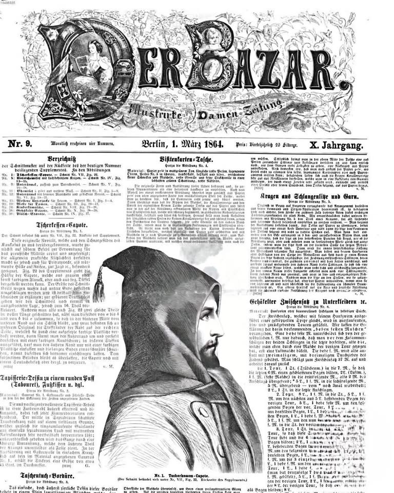 Paylaştığımız bu görsel, 1864 yılına ait ünlü Alman moda ve kadın dergisi "Der Bazar"ın 9. sayısının kapak sayfasıdır.