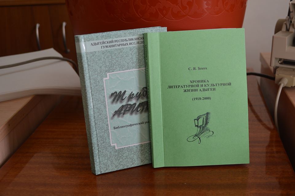 Мафэ къэс Iофэу ашIэрэм готэу, тхылъеджапIэм щылажьэхэрэм яIэ фондымкIэ картотекэ зэ¬гъэфагъэ зэрагъэкIугъ, ар яIэубы¬тыпIэу, хэтрэ шIэныгъэлэжьи къы-шъхьапэщт тхылъхэр къыдагъэкIых. Ащ фэдэ тхылъитIу сапашъхьэ илъ: зыр — «Труды АРИГИ. Библиографический указатель» зыфиIоу институтыр зызэхащагъэр илъэс 70-рэ зэхъум агъэхьазырыгъэр ары. Мыщ илъэс пшIы пчъагъэхэм институтым къыщыдагъэкIыгъэ (1929 — 1999-рэ илъ.) IофшIагъэхэр ыкIи мыщ ишIэныгъэлэжьхэм ятхыгъэхэу нэмыкI къыдэкIыгъохэм къащыхаутыгъэхэр къыдэхьагъэх. Зэхэзгъэуцуагъэр ЗекIогъу Свет. Редакторыр — филологие шIэныгъэ¬хэмкIэ докторэу, а уахътэм институтым научнэ IофшIэнымкIэ ипащэ игодзагъэу Мамый Руслъан.
