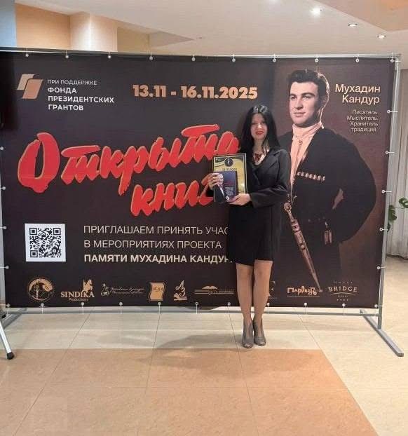 Adığe Devlet Üniversitesi Hukuk Enstitüsü öğretim üyesi Zarema Kimalovna Stash, "Açık Kitap" edebiyat yarışmasında "Düzyazı" dalında üçüncü oldu.