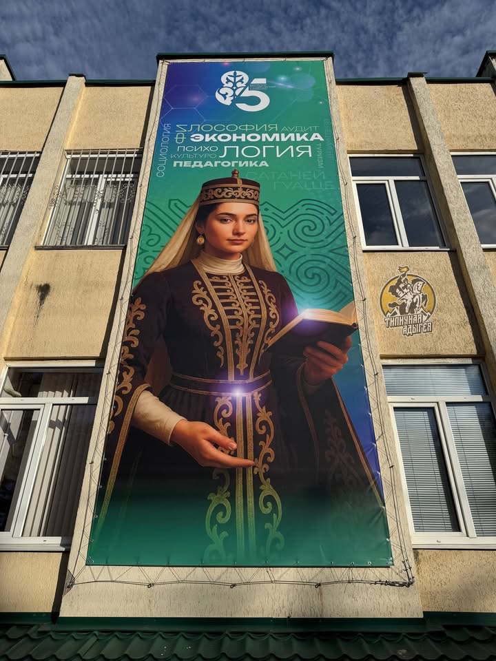Adığe Devlet Üniversitesi kuruluşunun 85. yılını kutlarken, üniversitenin bir cephesi yeni afişlerle süslendi.