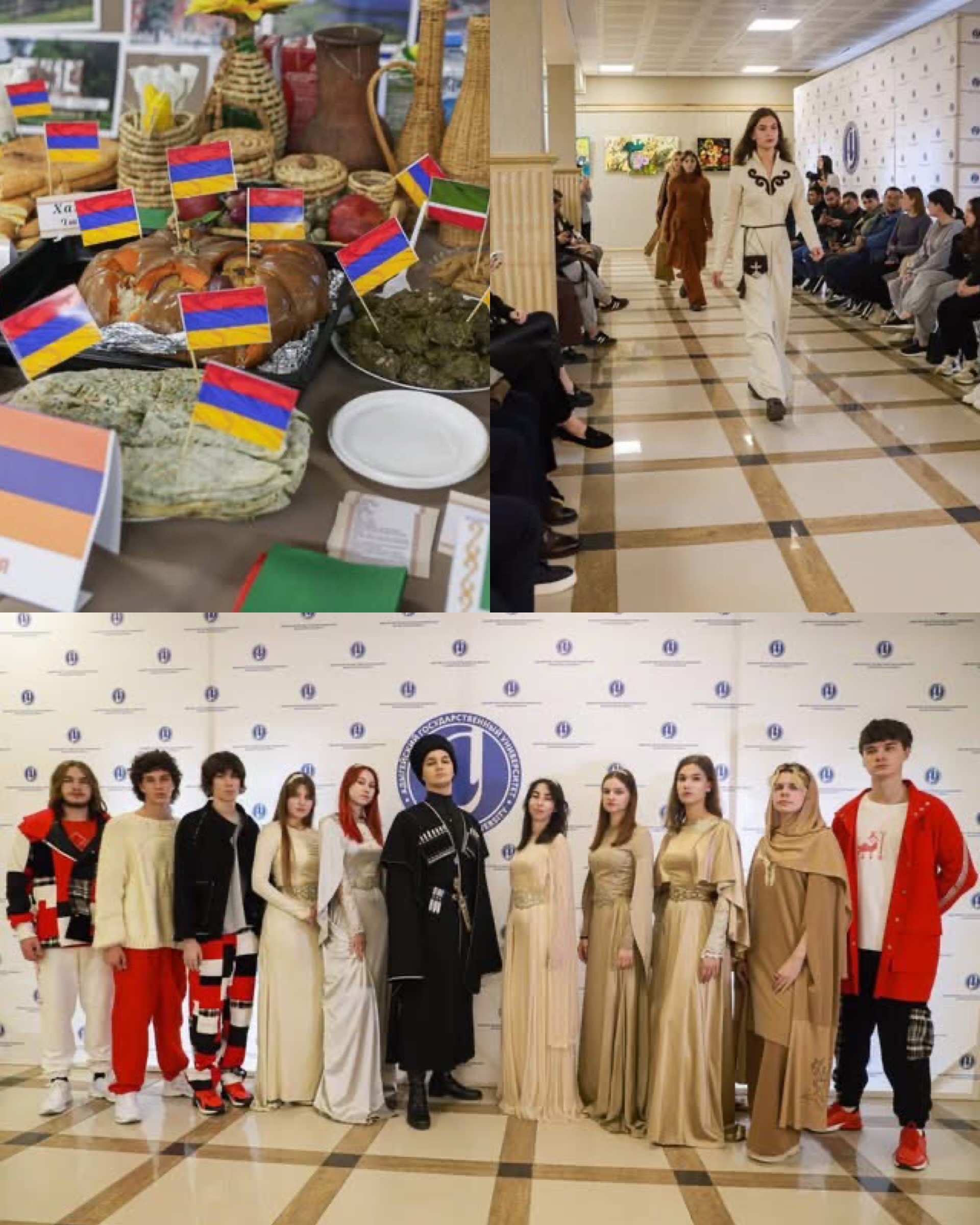Üniversitenin Öğrenci Bilim Topluluğu tarafından "Küreselleşme Koşullarında Gençlikte Kültürlerarası Diyalog ve Etnik Özbelirleme" konulu yuvarlak masa toplantısı ve etno moda tarz koleksiyonlar sergilendi.