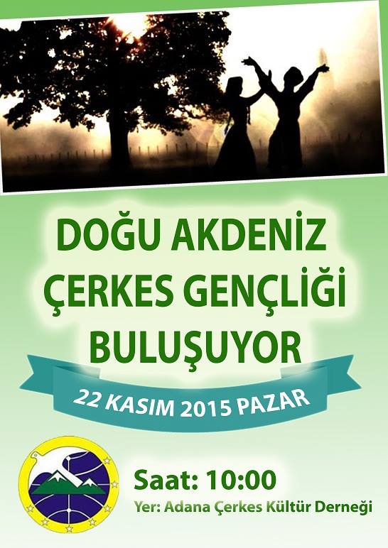Doğu Akdeniz Çerkes Gençleri buluşması 22 Kasım Pazar günü Adana Çerkes Kültür Derneğinde yapılacak.