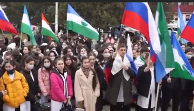 Ancak Novaya Gazeta'ya bilgi veren bir kaynak, Kabardey-Balkar Devlet Üniversitesi öğrencilerinin Rusya Devlet Başkanı Vladimir Putin'i ve Ukrayna'daki "özel harekatı" desteklemek için mitinge götürüldüklerini söylüyor.