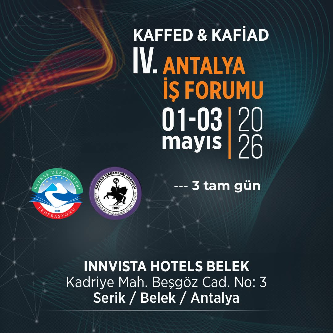 Kafkas İş Dünyası; İstanbul, İzmir ve Antalya'dan sonra bu defa yine Antalya'da buluşuyor! Sunumlar ve başarı hikayeleri ile dolu, networking fırsatlarının bol olduğu 3 tam gün sizi bekliyor.
