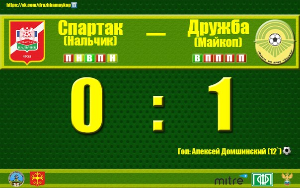 Güney Rusya 2. ligi A grubunda bugün Kabardey-Balkar Cumhuriyeti ekibi Spartak Nalchik Adıge Cumhuriyeti takımı Druzhba Maykop(Zekhoşnığ Mıyekuape)'u evinde konuk etti.